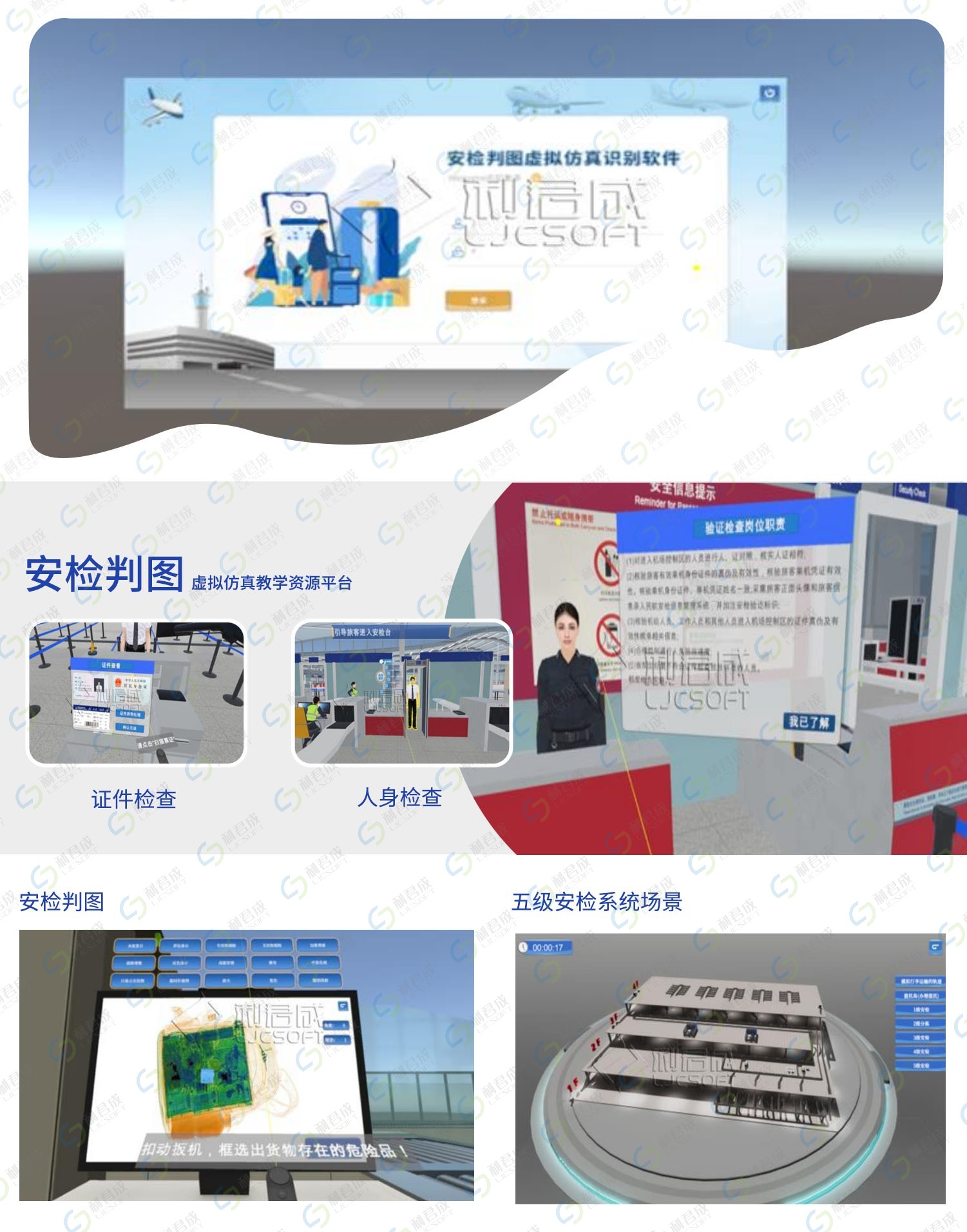 民航安全檢查虛擬仿真教學系統,是面向安全檢查的崗位工作內容進行設計和開發的 仿真模擬實訓系統。系統包括 PC 版本和 VR 版本兩個系統。兩個系統都包含旅客檢查,行李 檢查和貨物檢查三個模塊。主要是面向安檢判圖員的崗位工作內容進行設計和開發的仿真模 擬實訓系統,并根據安檢的各個崗位的相關要求,分別模擬各個崗位的工作內容和流程,對 發生不同的異常情況進行相關處理的系統。系統分為教師端和學生端,教師端具備學生數據 查看、掃描圖片編輯圖庫設置等功能,學生端具備學習數據查看、判圖練習等功能,并模擬 不同崗位對不同的情形進行正確的處理。